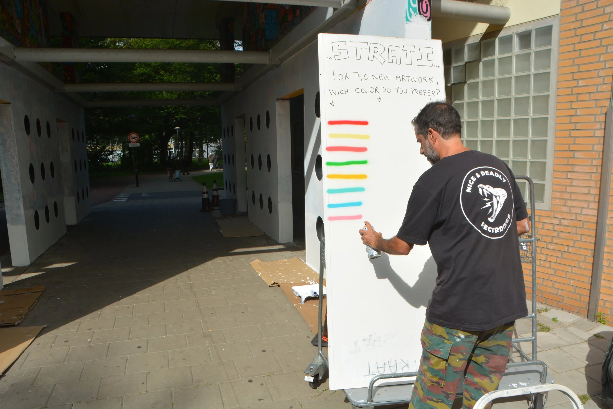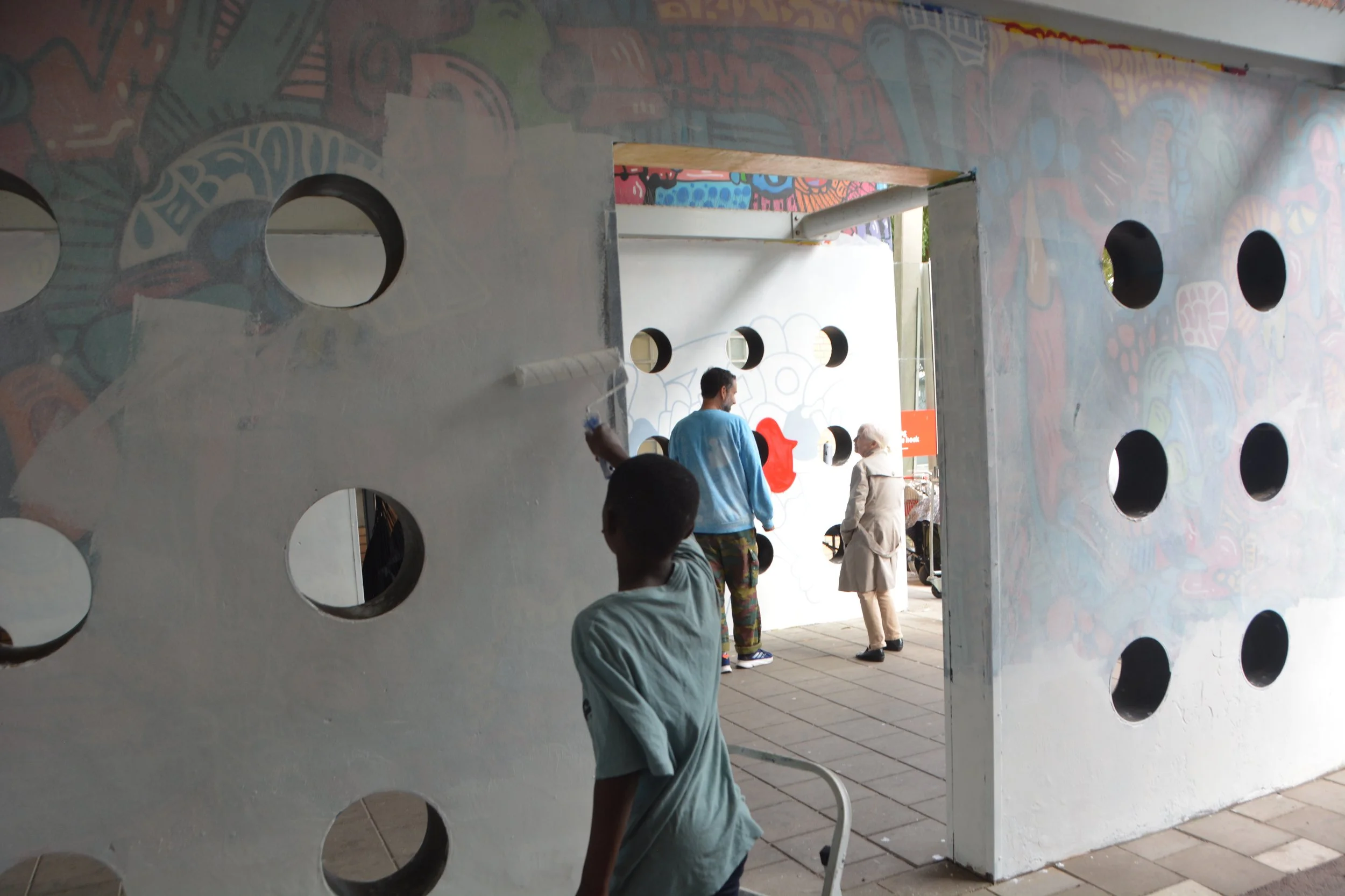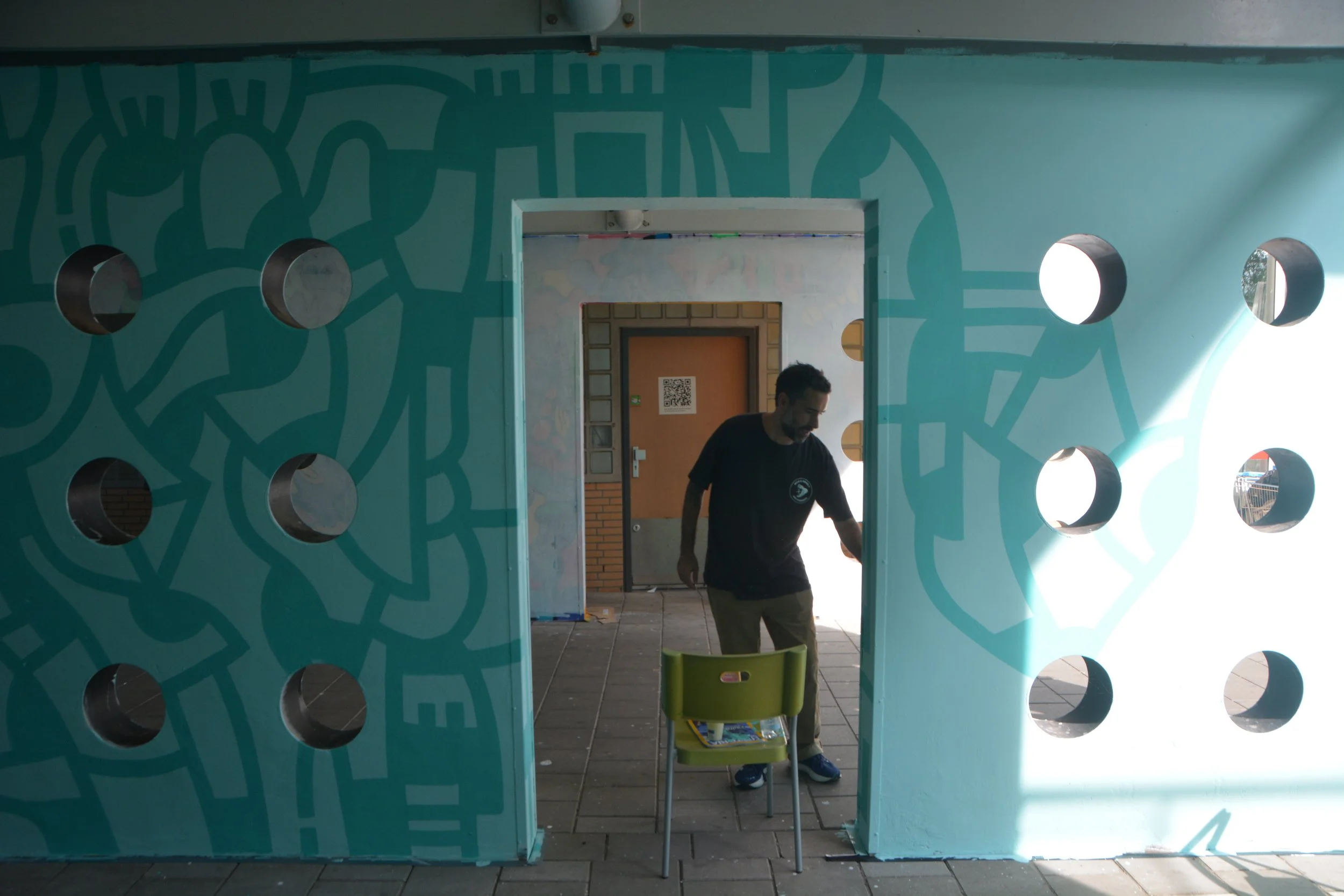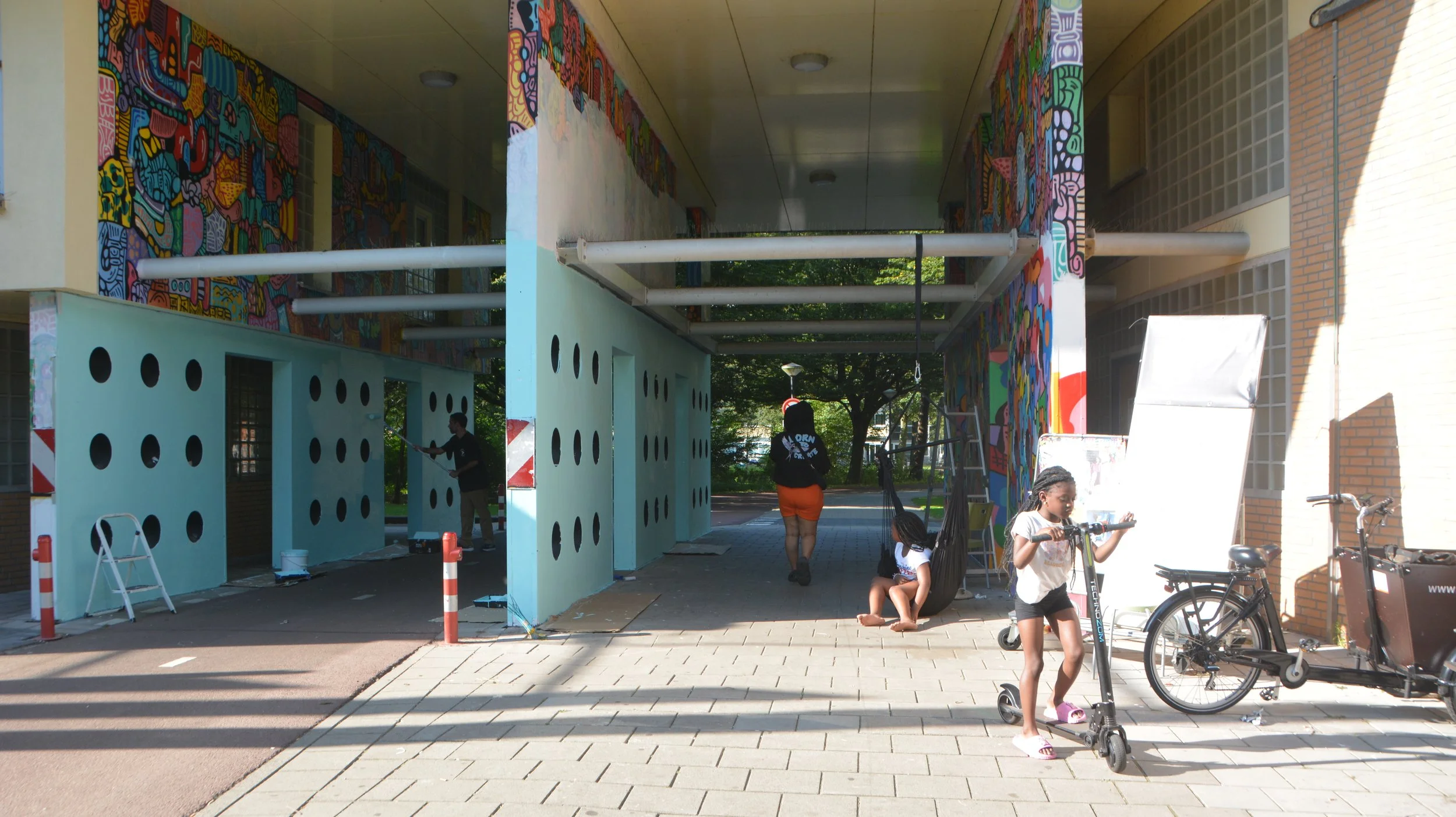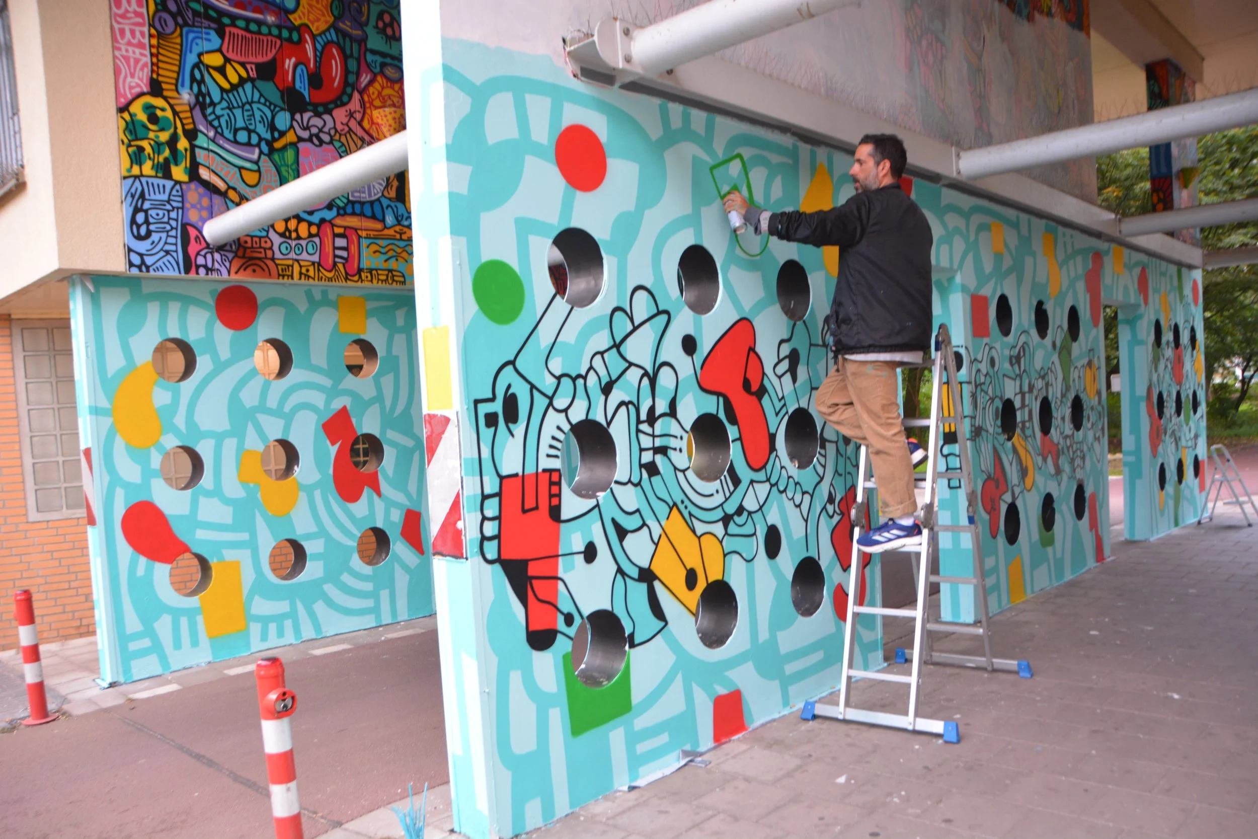 Onio's previous mural became a popular backdrop for photoshoots by creatives from Southeast, and we’re incredibly grateful for the love and support it received. Unfortunately, the original artwork was damaged. Since our crew member lives in the flats of the H-buurt, we reached out to Onio again to keep his art in the neighborhood. In September 2024, he painted an amazing new mural on Hofgeest.